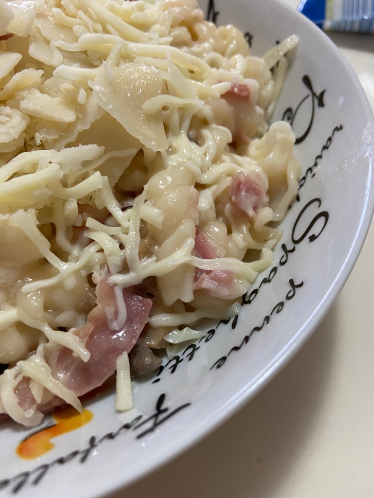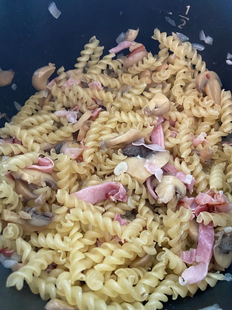 E timpul pentru paste: niște paste delicioase cu ciuperci, cu usturoi, cu șuncă afumată și cu smântână cremoasă.