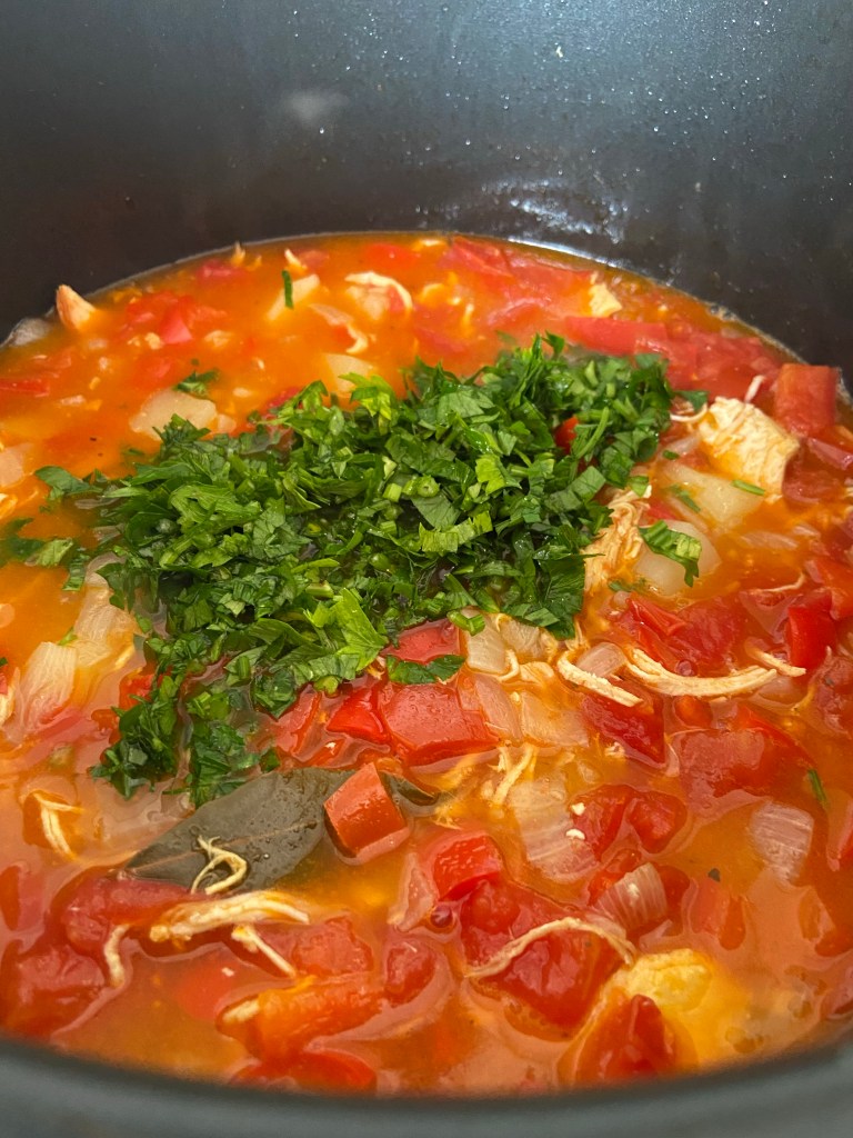După cele zece minute, scoatem aburul, eliberăm presiunea. Punem pătrunjelul și un praf de sare și îi dăm slow-cook 6 ore.