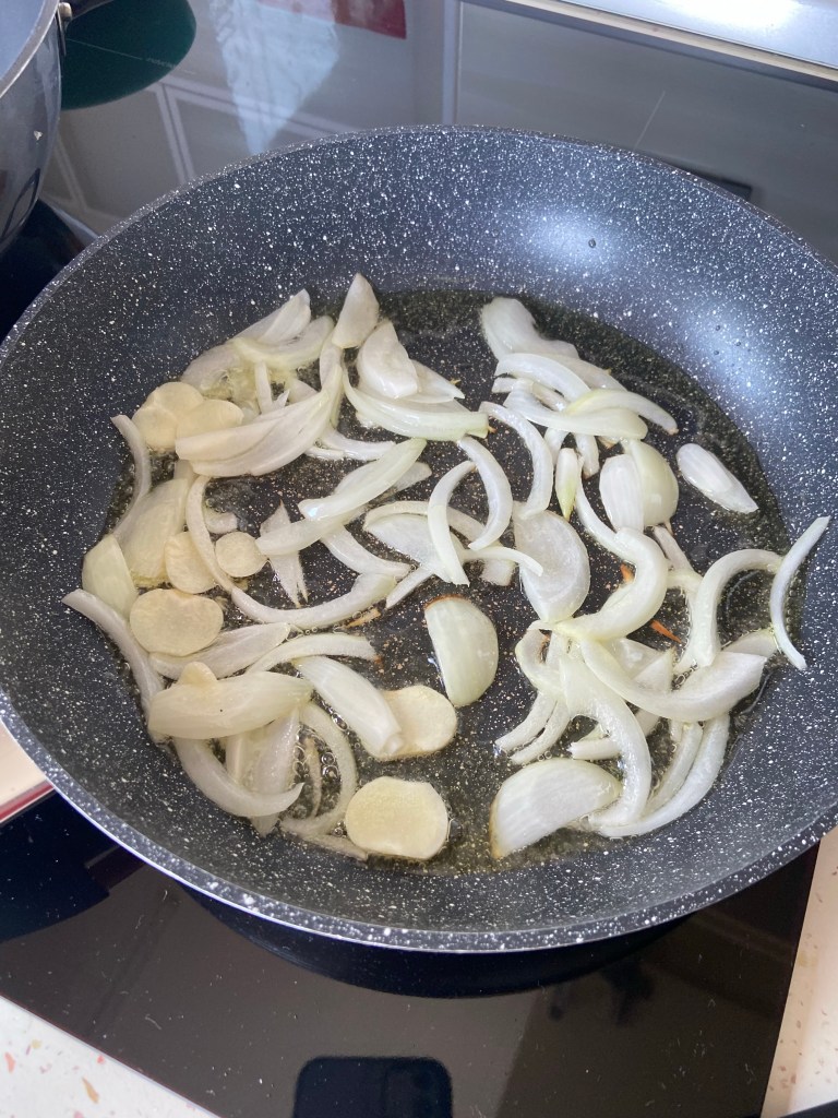 Punem puțin ulei de măsline la încins. aruncăm în tigaie ceapa și usturoiul.