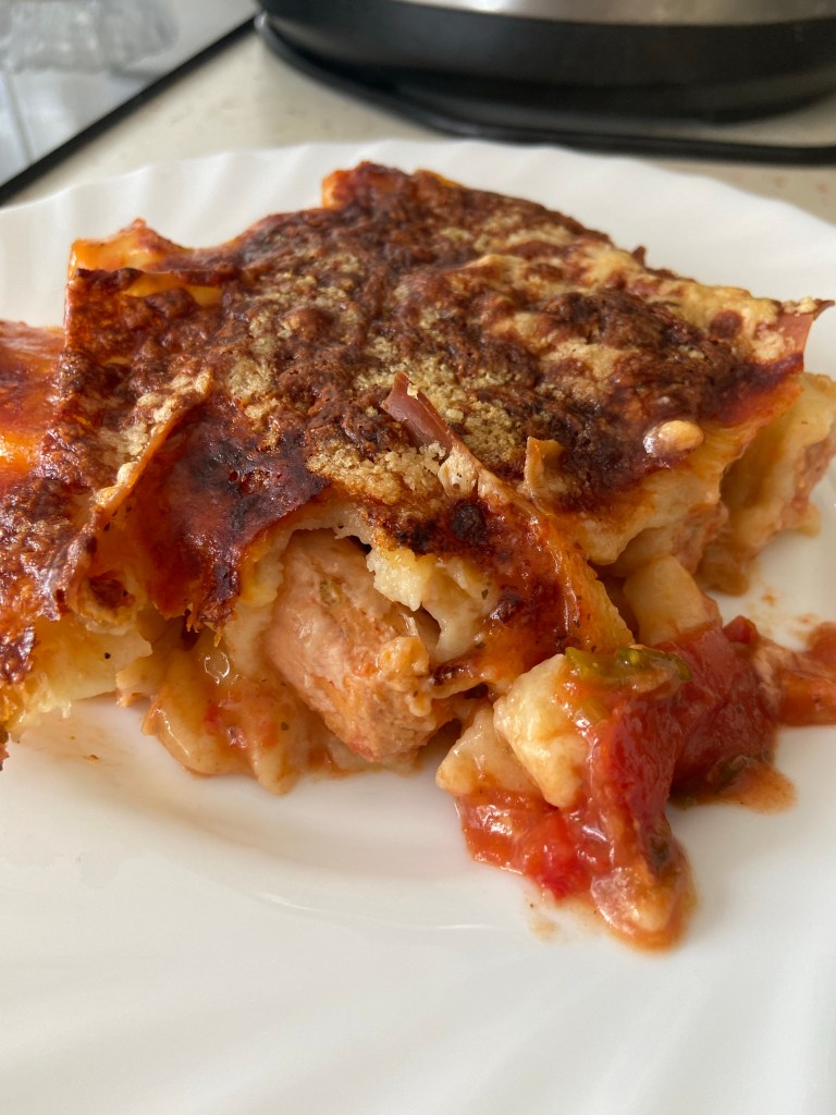 Setăm cuptorul la 180 de grade pentru 30 de minute, sau până ce se rumenește frumos. La final va arăta așa: