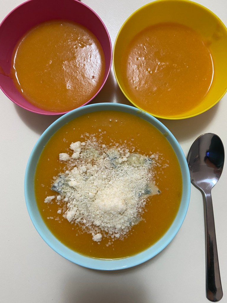 Separat fierbem o mână de tăieței (copiii sunt fani) și coace câțiva cartofi (pentru adulții ce nu vor tăieței).