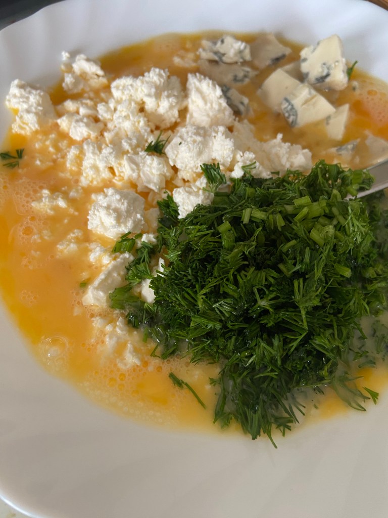 Spargem ouăle și le amestecăm toate bine.