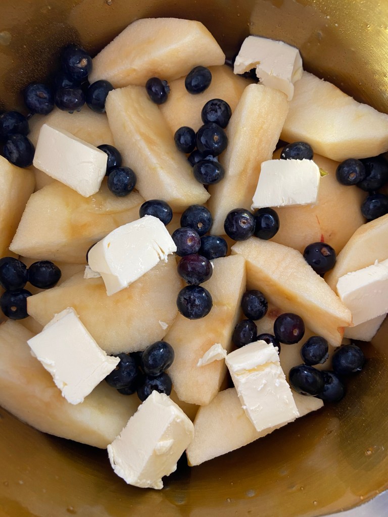 Punem fructele într-un vas de 28cm diametru.