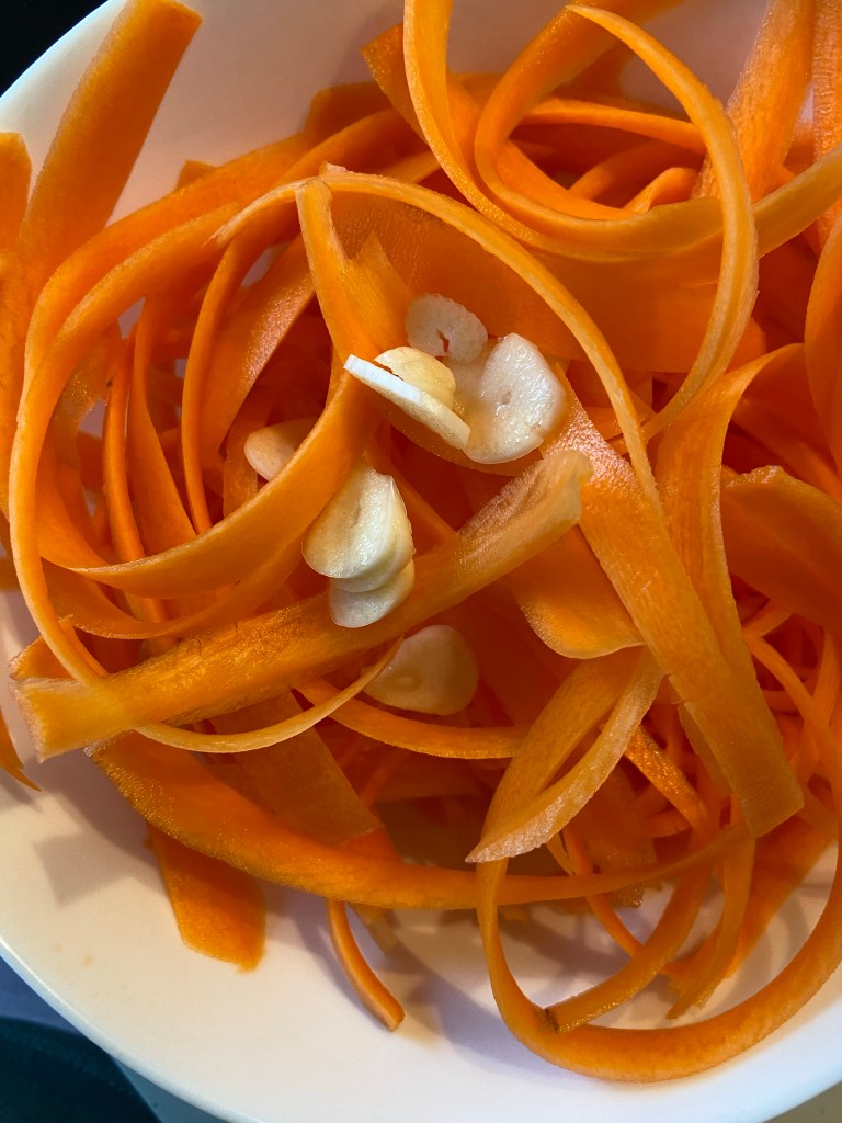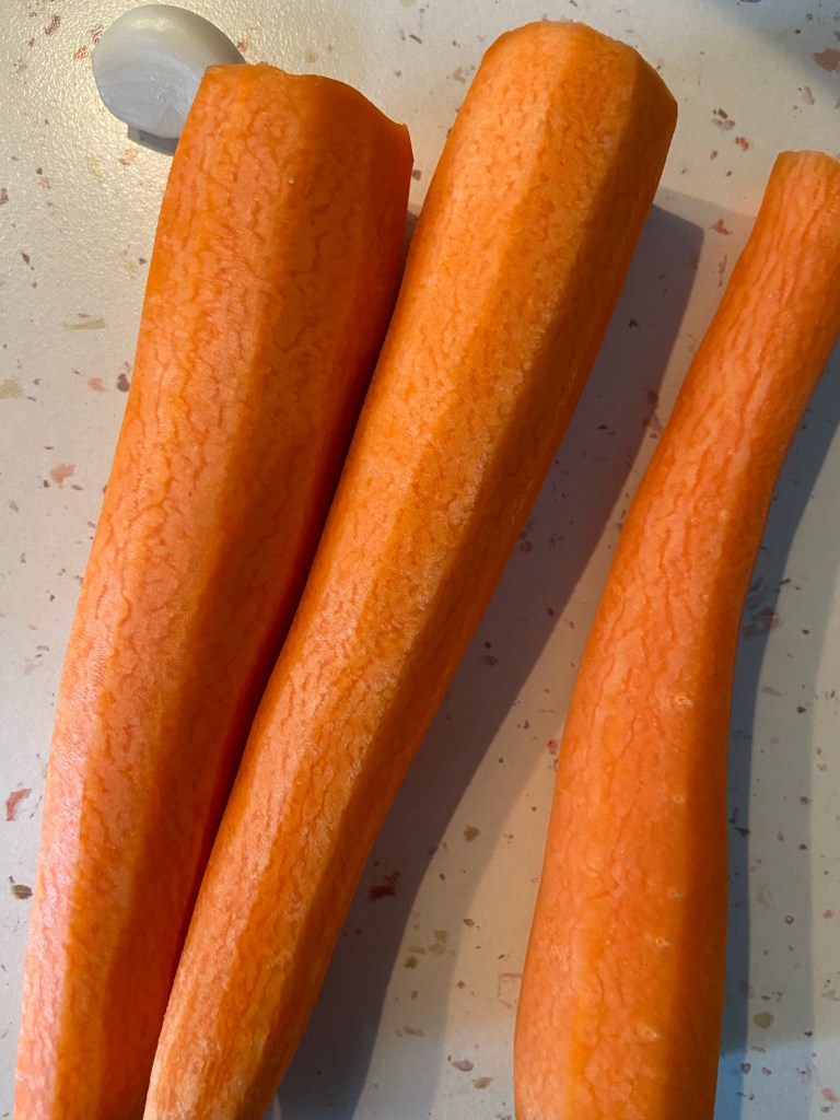 Pas 1: Curățăm morcovii, îi spălăm și îi feliem cu curățătorul de legume.