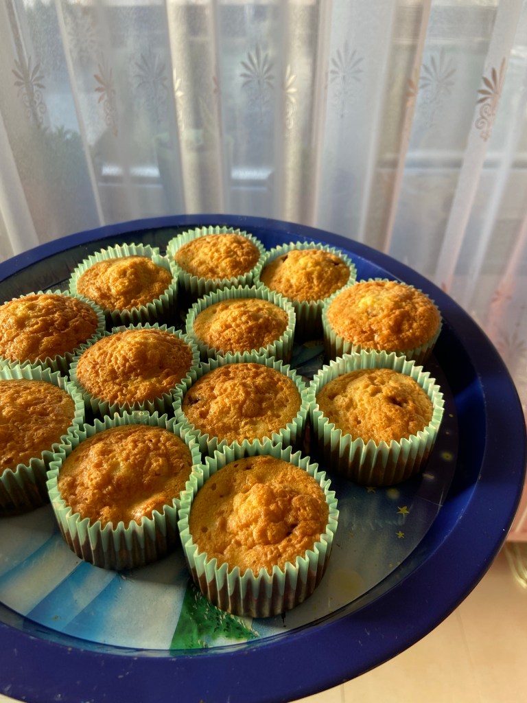 Cam de fiecare dată când avem musafiri, aleg să pregătesc repejor niște brioșe. De data asta, am vrut ceva pufos, cu unt și fulgi de ciocolată.