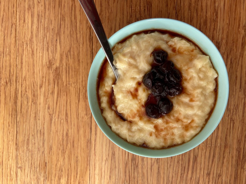 Vom face prăjitura / budinca în două etape: dimineață fierbem fulgii de secară cu apă și apoi adăugăm laptele. Ca un terci de ovăz. Oprim focul, îi acoperim cu capacul și îi lăsăm să se răcească.