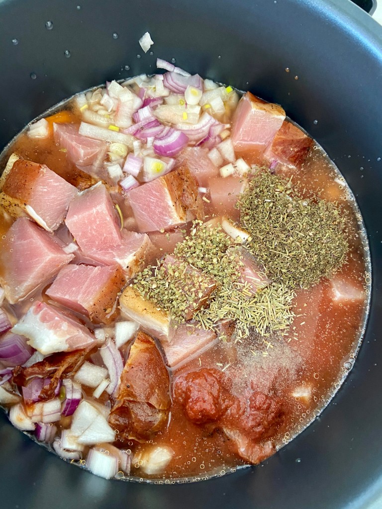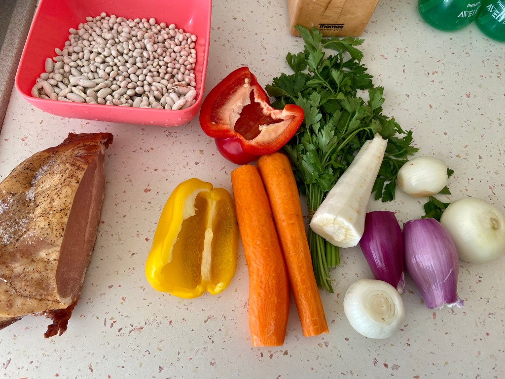 Să începem: adunăm ingredientele pentru o mâncărică de fasole cu afumătură!