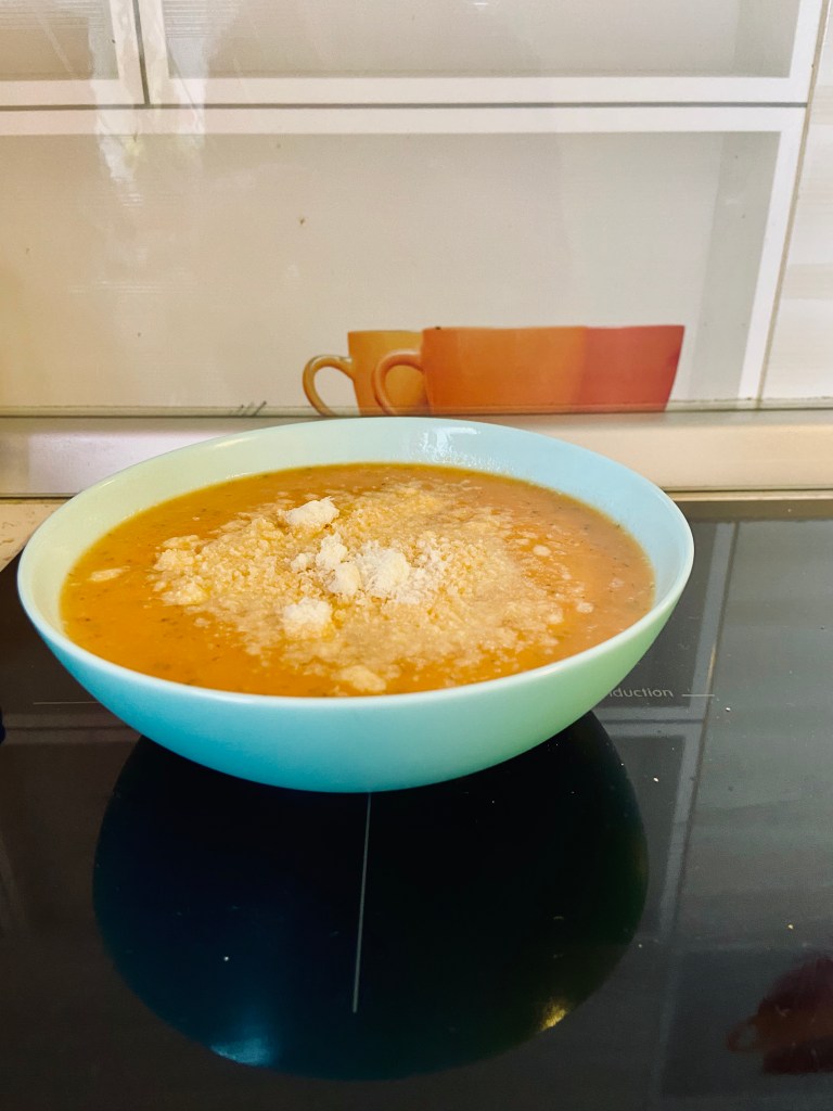 Cu toții am crescut cu supa de roșii, cu sau fără orez, cu sau fără fidea, cu sau fără găluște. Nu îmi plăcea deloc! Așa că, atunci când a venit rândul meu să o gătesc copiilor mei, am zis să o fac un pic altfel, să îi mai adaug ceva, să o fac gustoasă și pentru mine.