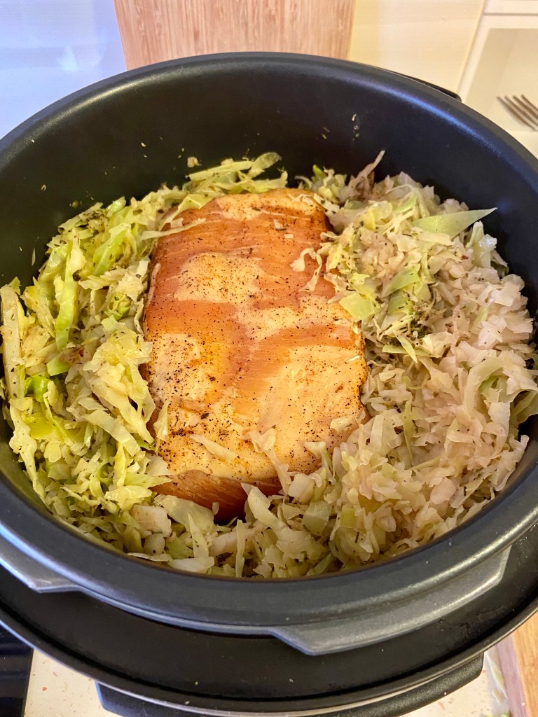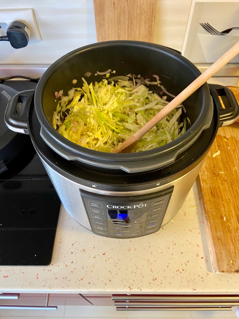 O rețetă delicioasă și de sezon este varza la cuptor cu carne afumată de porc. De data asta, am vrut să încerc rețeta la Crock-Pot Express.