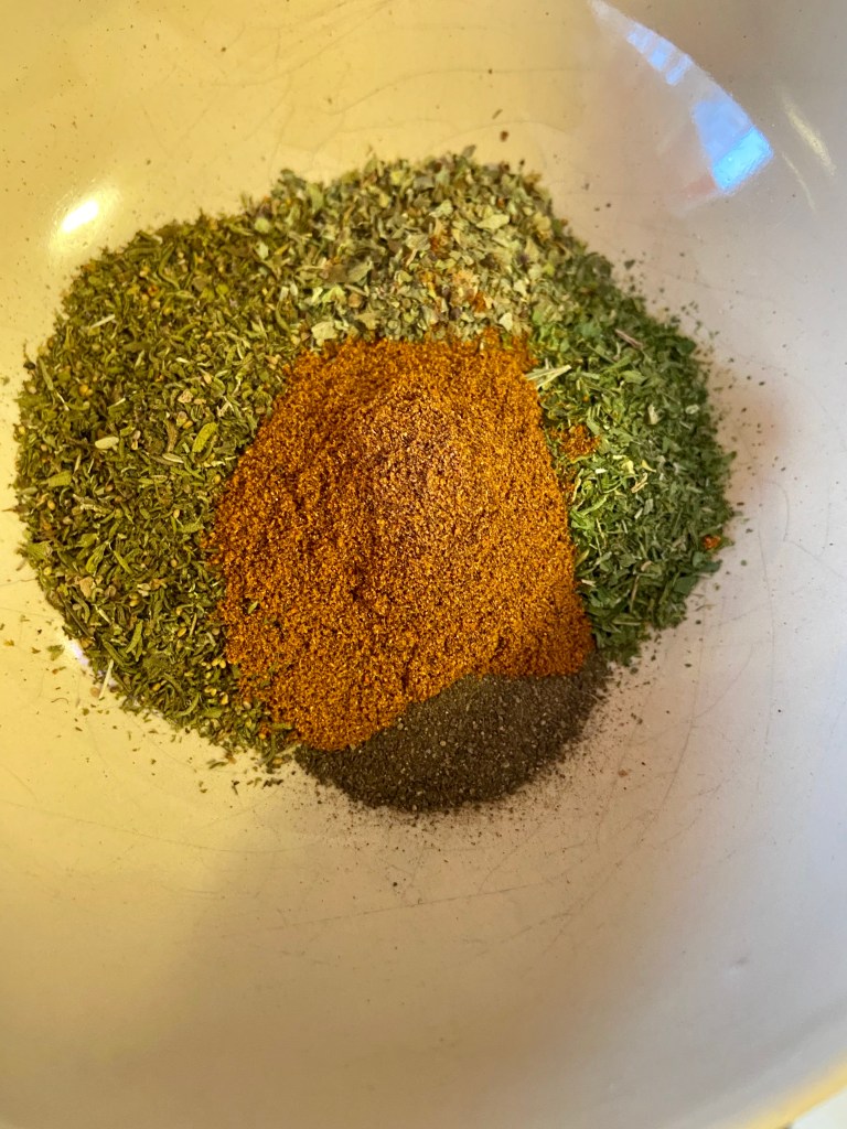 Am pus piper negru, boia de ardei dulce, cimbru, mărar și puțin pătrunjel.