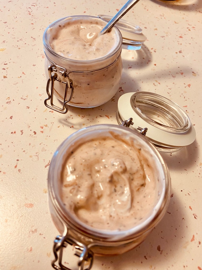 Noi avem variații pe aceeasi temă. Baza este iaurtul grecesc cu semințe de chia și cu miere. Aici mai adaugăm fie fulgi crocanți de ovăz sau de hrișcă, fie biscuite de ovăz, sau fructe (banană, mere, pere, mango). Voi consumați chia? In ce combinații? (Întreb pentru micii mofturoși 🙂 )