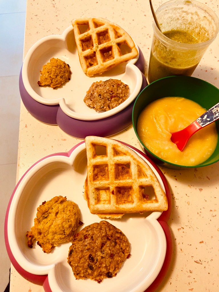 Pentru pici, eu le-am servit ca masă de prânz alături de o chifteluță de curcan cu dovlecei și o altă chifteluță de fasole roșie cu quinoa.