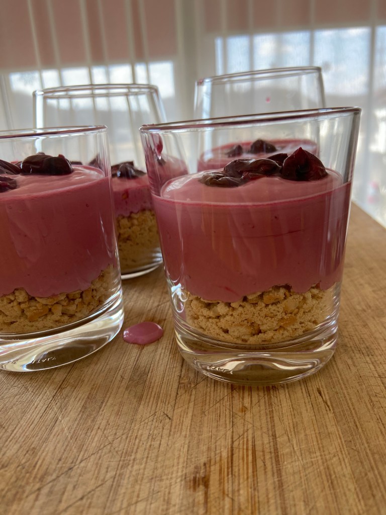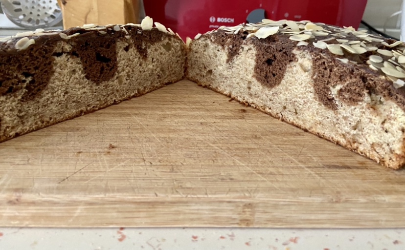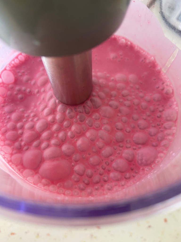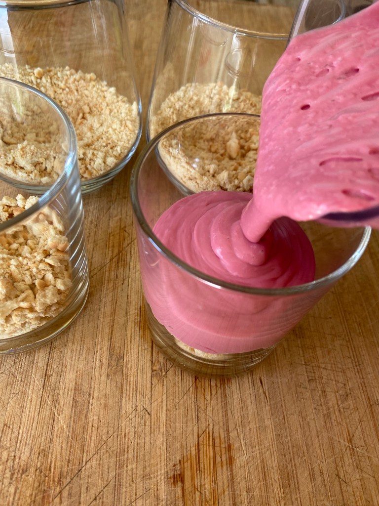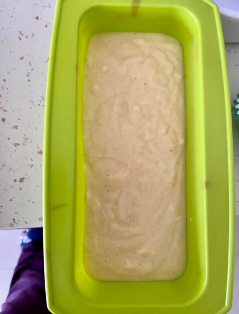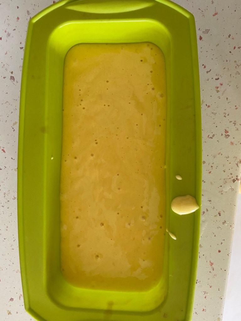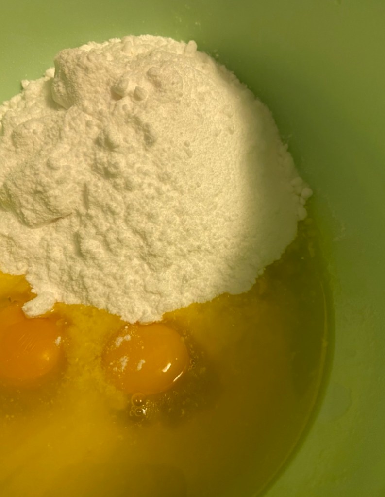 Separăm compoziția în 2 castroane – cantități asemănătoare. Într-una punem esența de vanilie, în cealaltă cacao. Amestecăm bine: