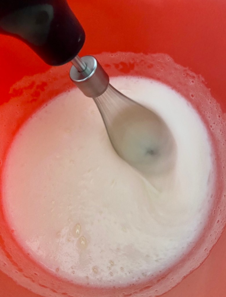 Batem spumă cele 5 albușuri, cu un praf de sare. După ce arată așa: