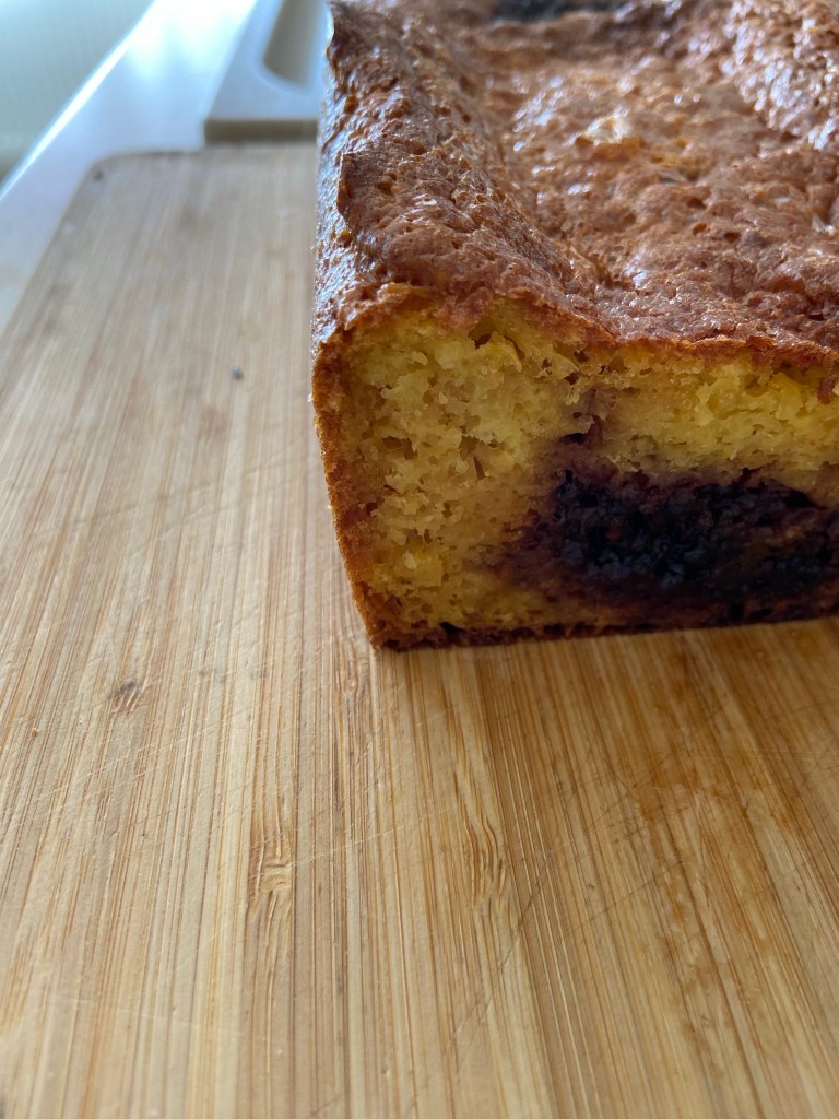 Și repetăm de 2 ori procesul: o lingură vanilie, una cu cacao. La final luam o scobitoare și trasăm linii din centrul brioșei spre exterior: