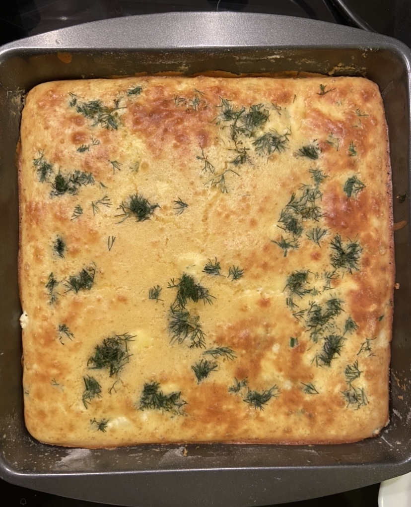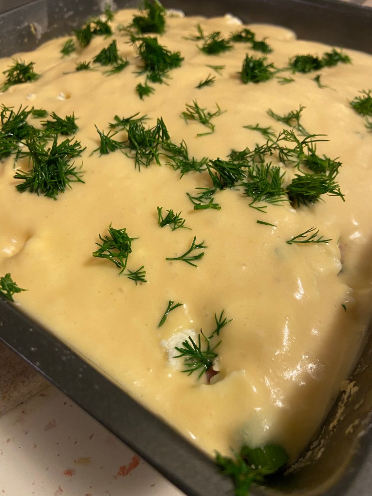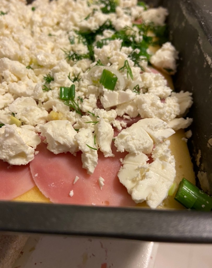 Pentru a fi rapizi și ordonați, e bine să ne pregătim Ingredientele dinainte. Topim untul și îl lăsăm un pic la răcit. Separăm albușul de gălbenuș și amestecăm făina cu praful de copt. Brânza o pasăm cu furculița și tocăm mărunt ceapa verde și mărarul.