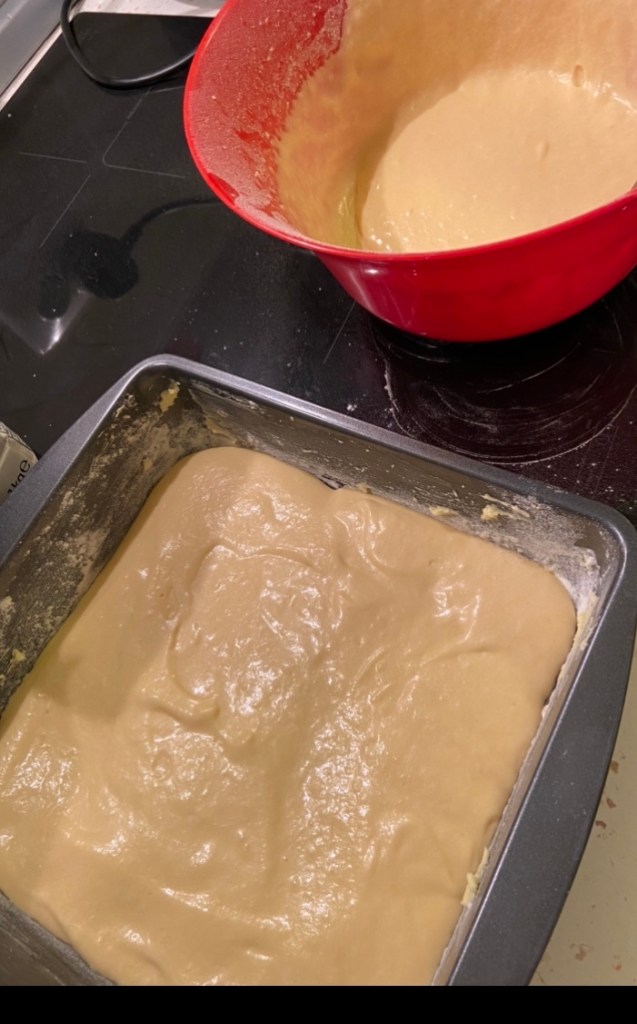 Punem jumătate de compoziție în tavă și le dăm la cuptor pentru 10minute.