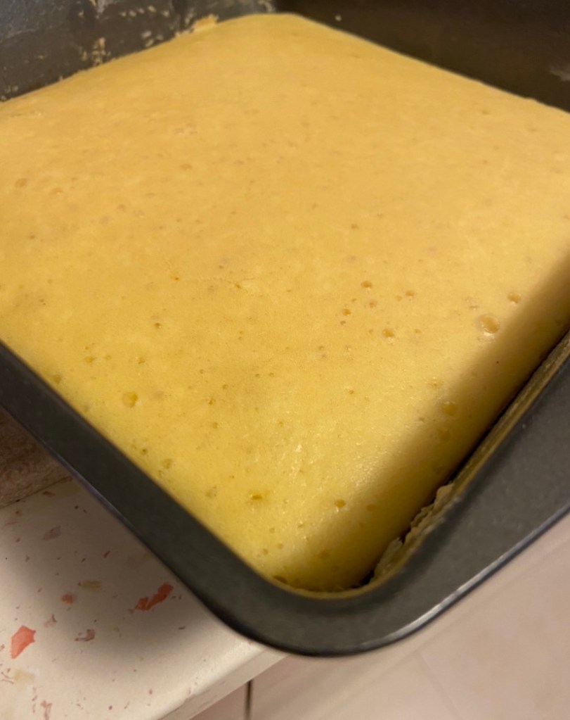 Siropul îl adăugăm tot peste chec, in tavă, va acoperi checul. Lăsăm totul la rece 2 ore.