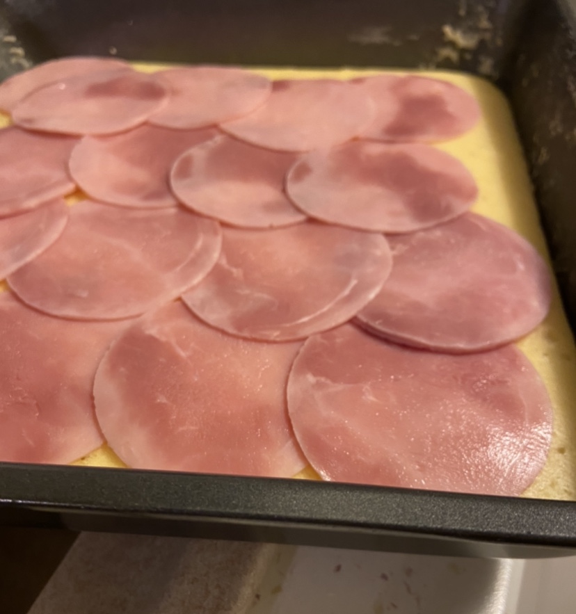 Scoatem tava din cuptor, după ce a expirat timpul. Blatul va fi parțial făcut.