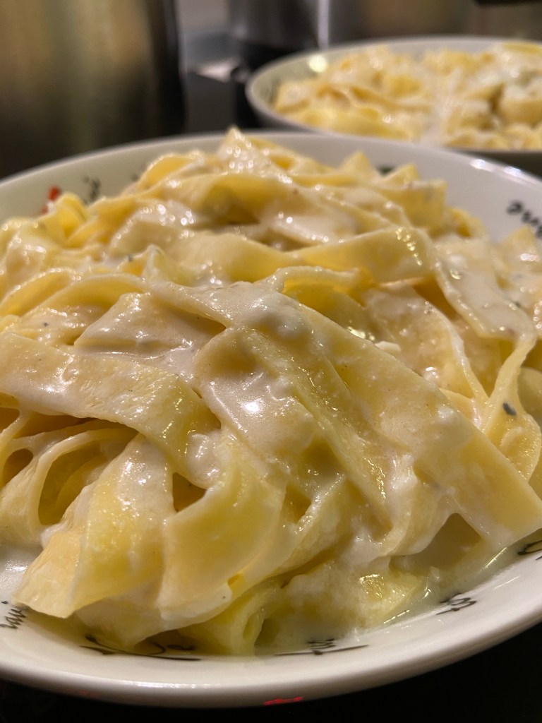 Pastele le punem în laptele cremos cu brânzeturi. Amestecăm ușor, oprim focul și le lăsăm 10 minute ca să se amestece aromele.