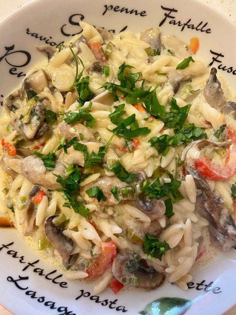 Din seria: „Ce mai gătim și noi rapid la cină?”, prezint pastele acestea orzo și rețeta mea inventată cu ce mai am prin frigider.
